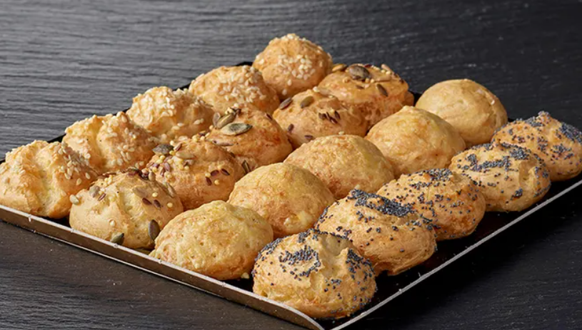 Ce plateau se compose de mini gougères béchamel au fromage, au poulet curry, au saumon fumé et au lardon/fromage.